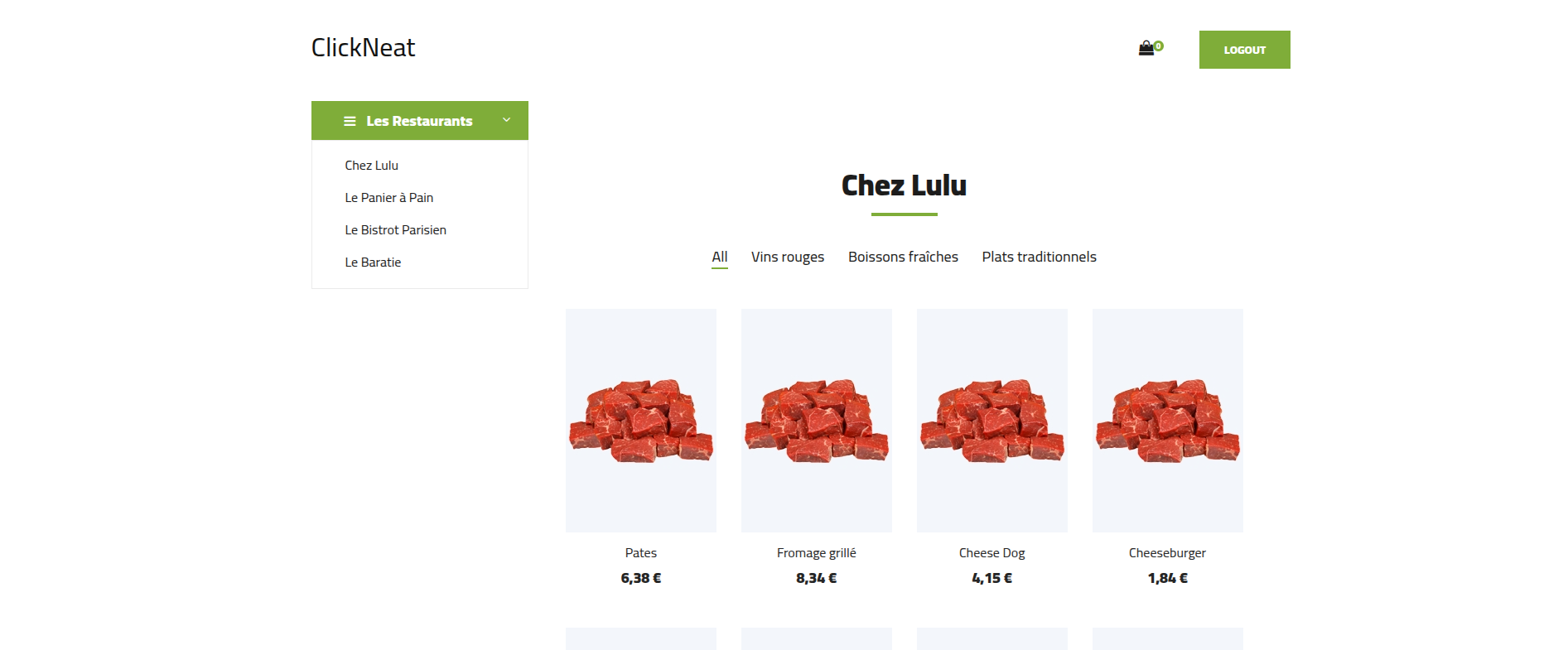 "ClickNeat" est une application de commande de restauration en ligne développée avec Laravel, intégrant gestion des utilisateurs, panier dynamique et suivi des commandes en temps réel, réalisée dans le cadre de ma formation en alternance.